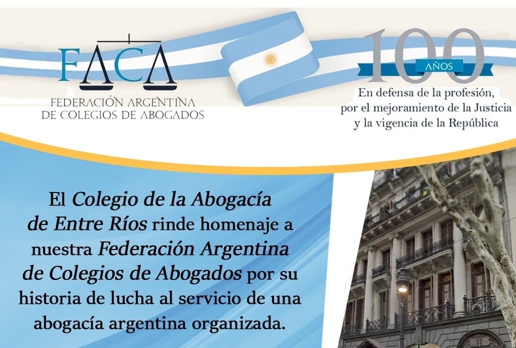 El Colegio de la Abogacía de Entre Ríos rinde homenaje a nuestra Federación Argentina de Colegios de Abogados (F.A.C.A.) por su historia de lucha al servicio de una abogacía argentina organizada.